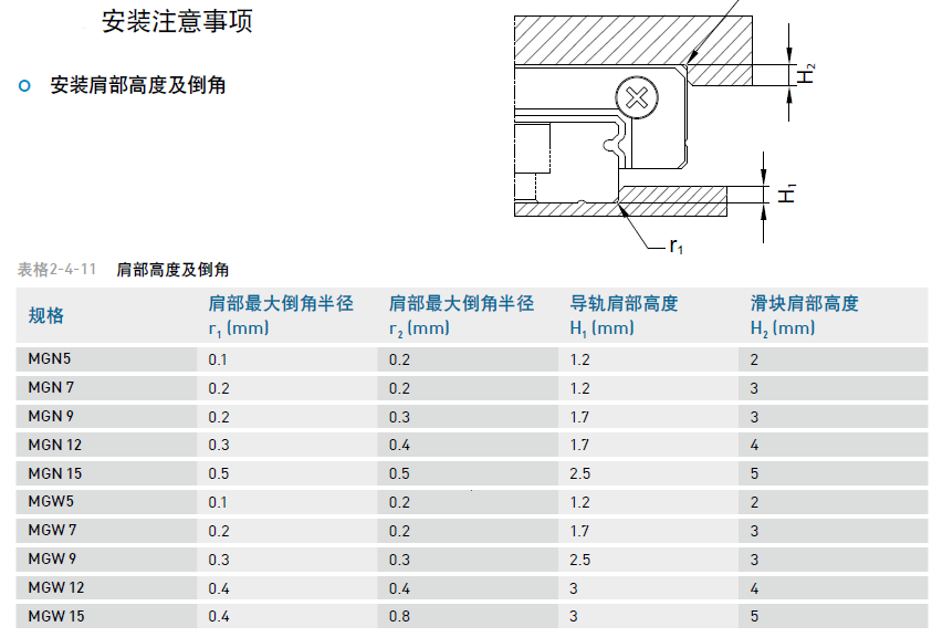 微型滾珠直線導軌MG系列安裝平面誤差對照表