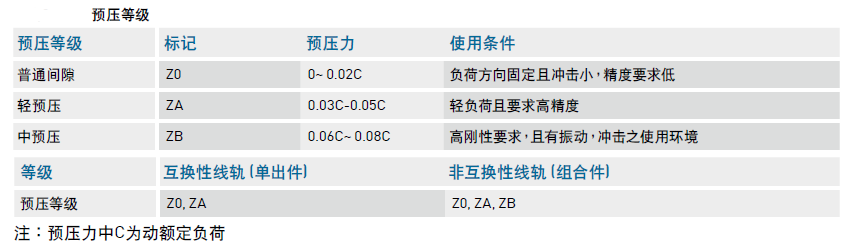 靜音式直線導(dǎo)軌QE系列低組裝預(yù)壓力及預(yù)壓等級介紹